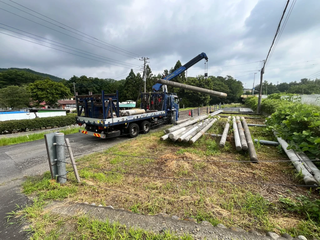 ユニック車を使い、安全かつ迅速にコンクリート柱を回収します